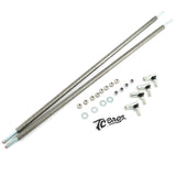 Kit includes: Two 24: long 5/16" threaded rods, four 5/16" ball joints, two 5/16" ID x 1/2" OD steel tubes (to cover rod threads and increase rigidity), eight 5/16" jam nuts, four nylock nuts and four flat washers. Steel tubes are raw finish and must be painted after cutting to length to prevent corrosion.