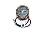Speedometer - Chrome Mini - 1.9" (48mm.) Diameter, Black Face, 0-140Mph. LED internal illumination, Cable Driven - matches Electronic Tachometer #03-0675 Calibrated for 19" front wheel. 2:1 ratio.