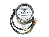 Mini chrome speedo with white face - 60mm - Reads 0-140MPH with resettable tripmeter. LED Internal illumination and Indicator lights (High Beam, Signal and Neutral Light).