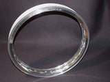 H 1.85x19 36 hole shouldered polished aluminum rim.Very hard to find. Classic 36 hole pattern will work with many vintage bikes. Works with XS650. This is a quality rim comparable to what you see on other sites for much more money.Great for chopper, bobber projects.OEM reference # 94418-19145-00 given for replacement reference only, the materials and specifications are different, this is not an OEM rim.This is the standard size front rim for SR500 for those looking to convert from mag wheels.